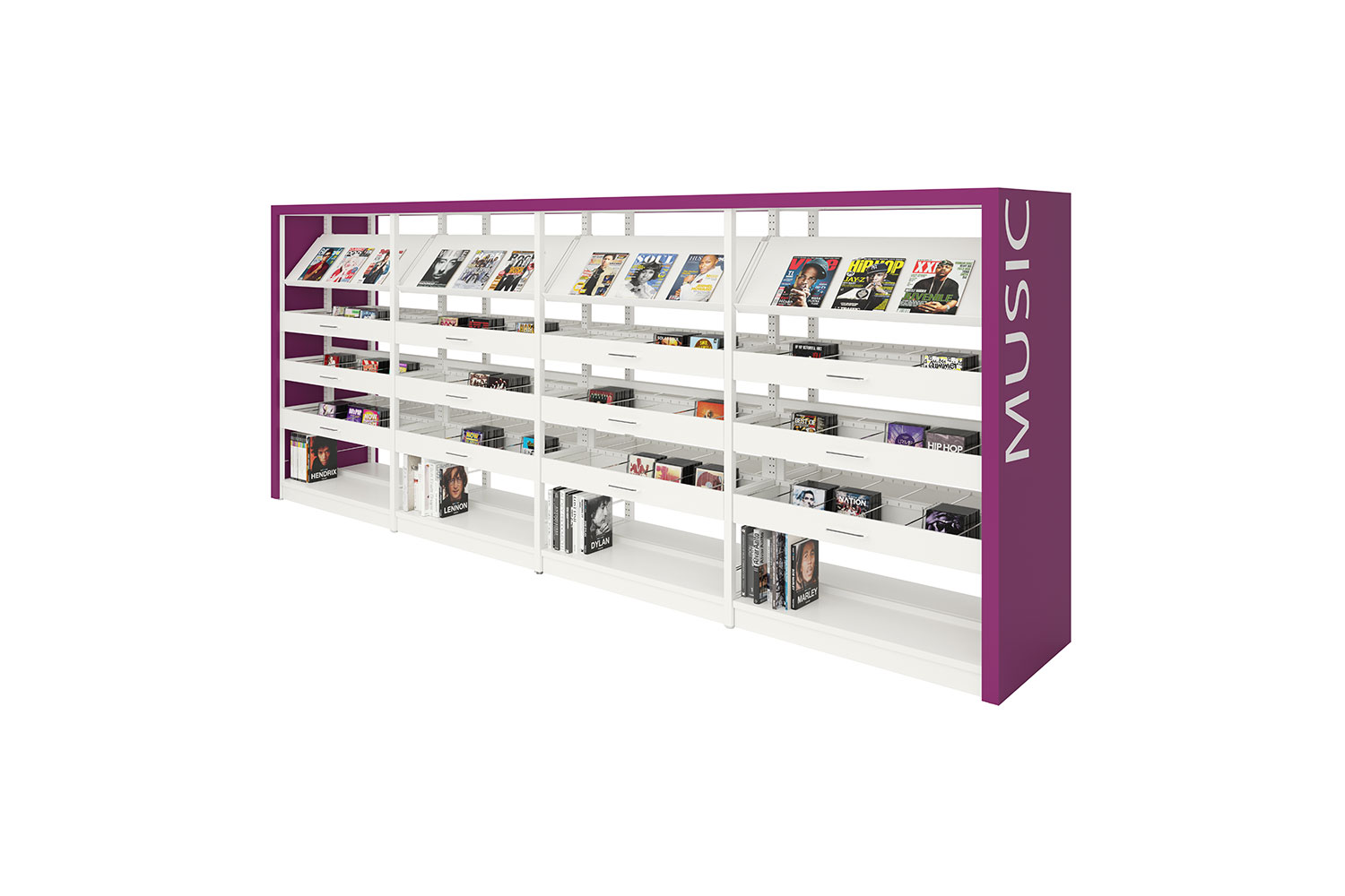 - Book, magazine and newspaper display and storage