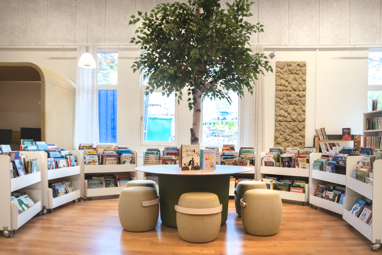 We use laminated birch plywood – here with visible edges. All to create both a durable surface and a lasting construction. Perfect for the most demanding library environments!