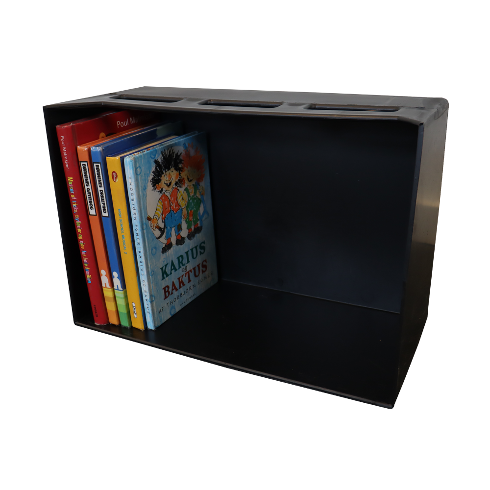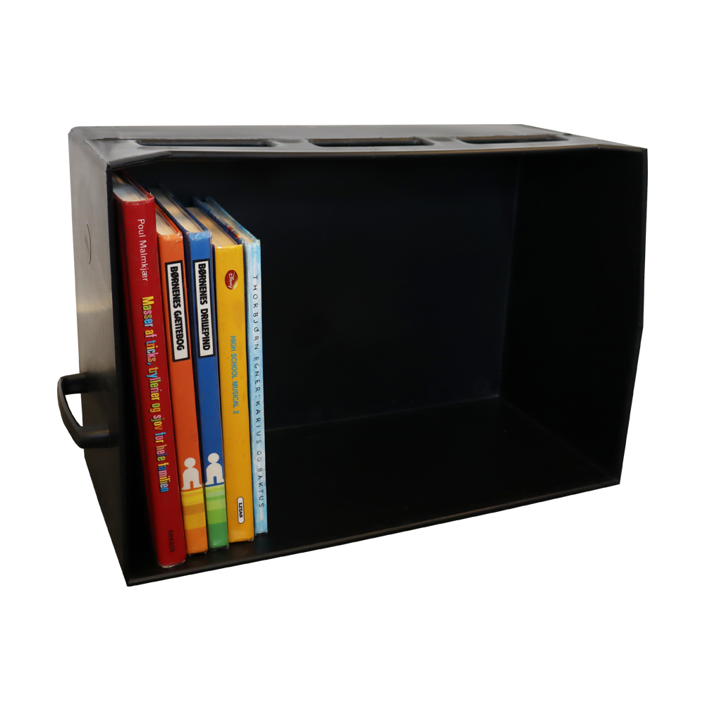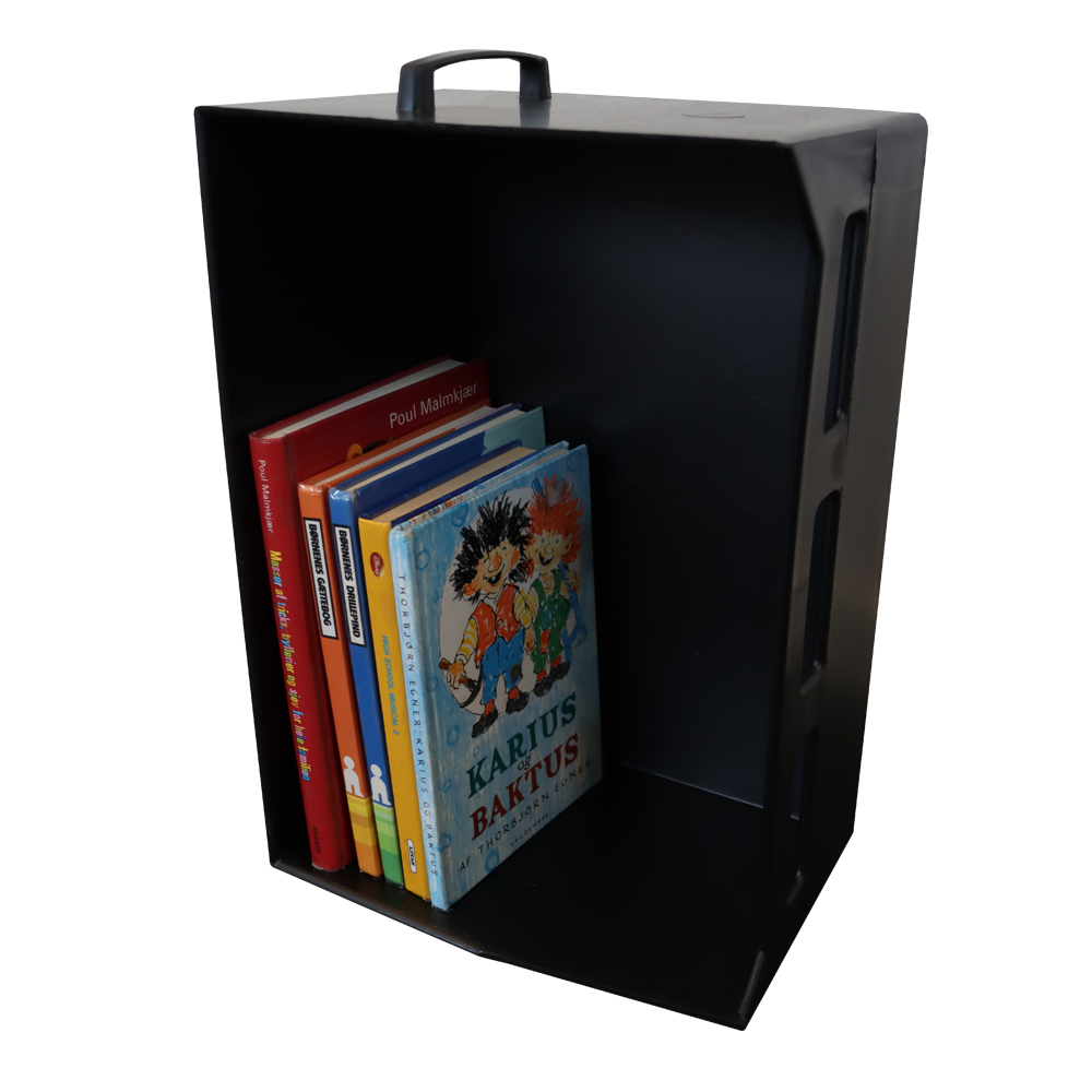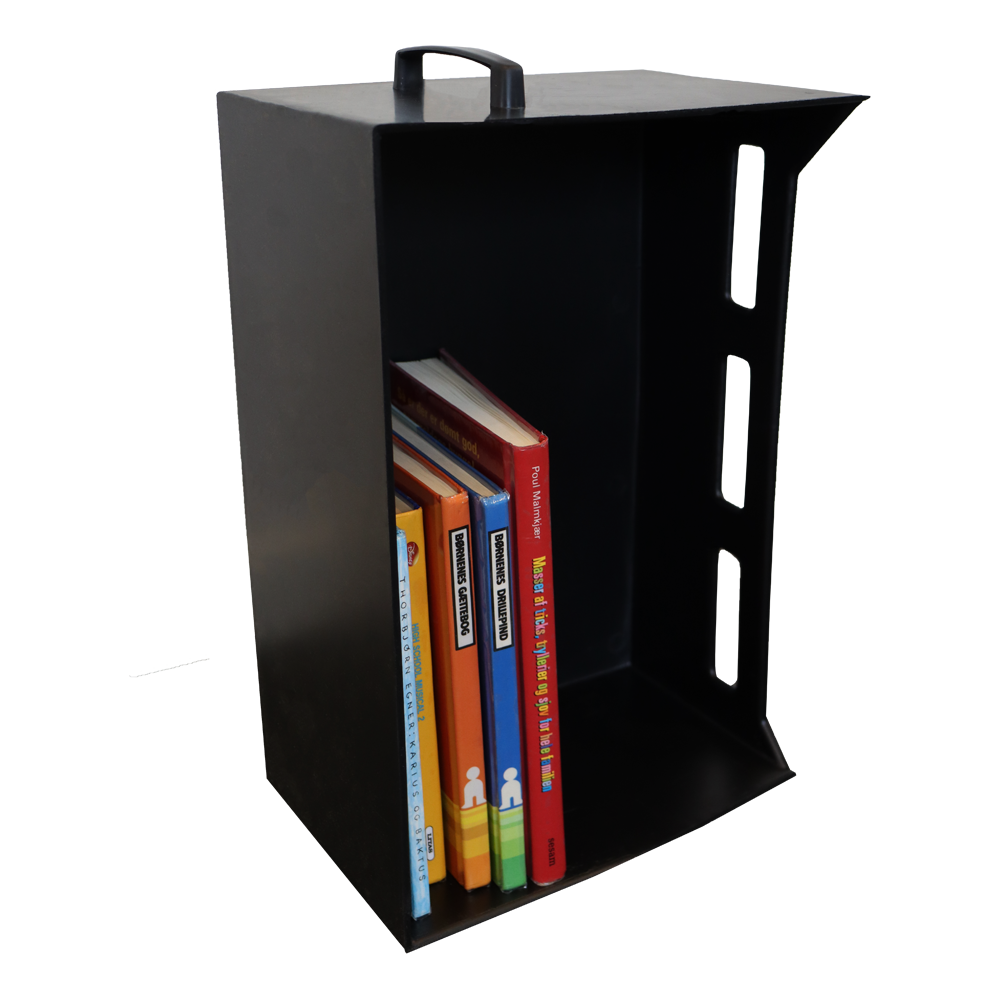 Solid book carrier box with handle for books and other medias.