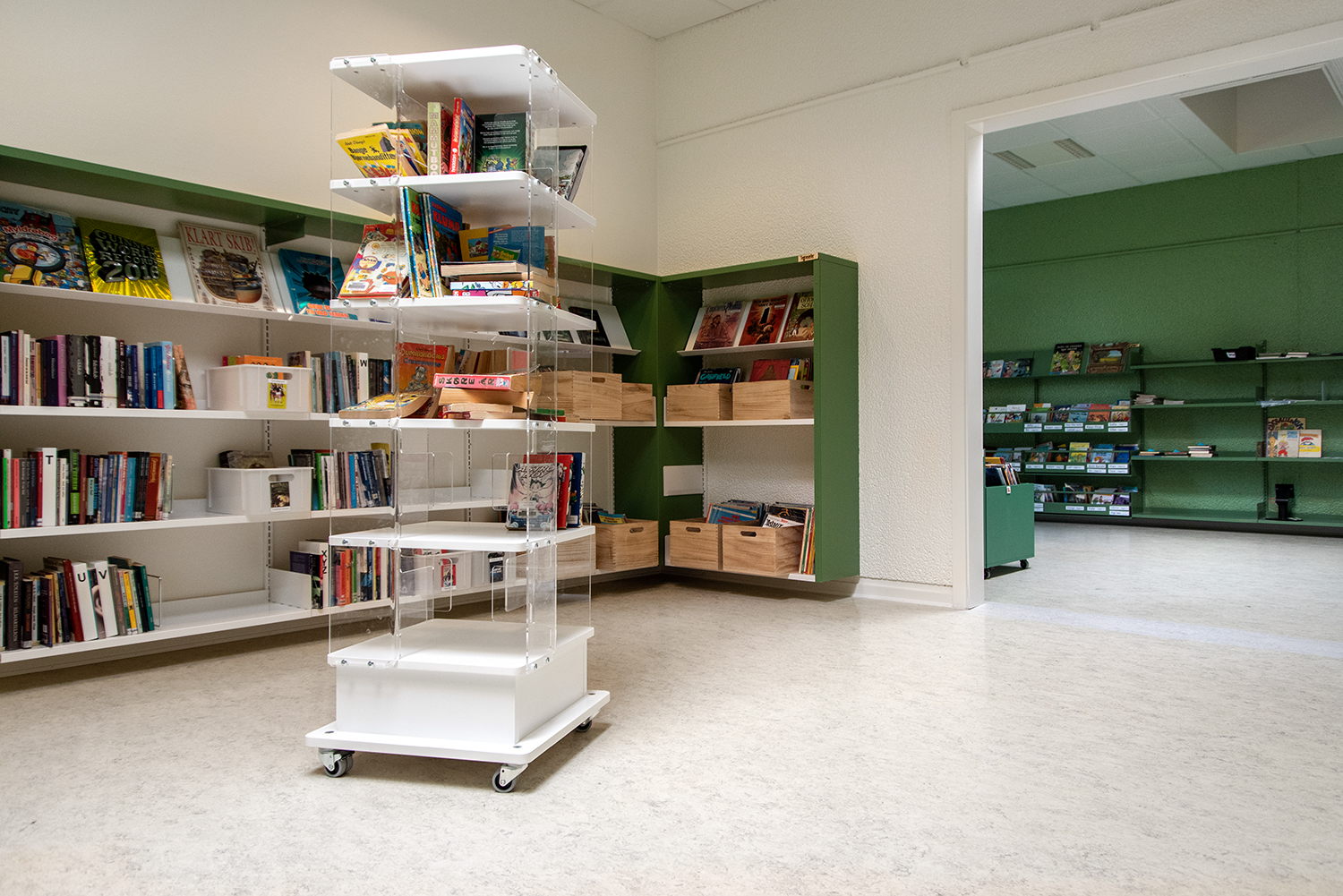 When moving a Book Tower on wheels, please remove all books - otherwise it is a risk that the acrylic parts may brake.
