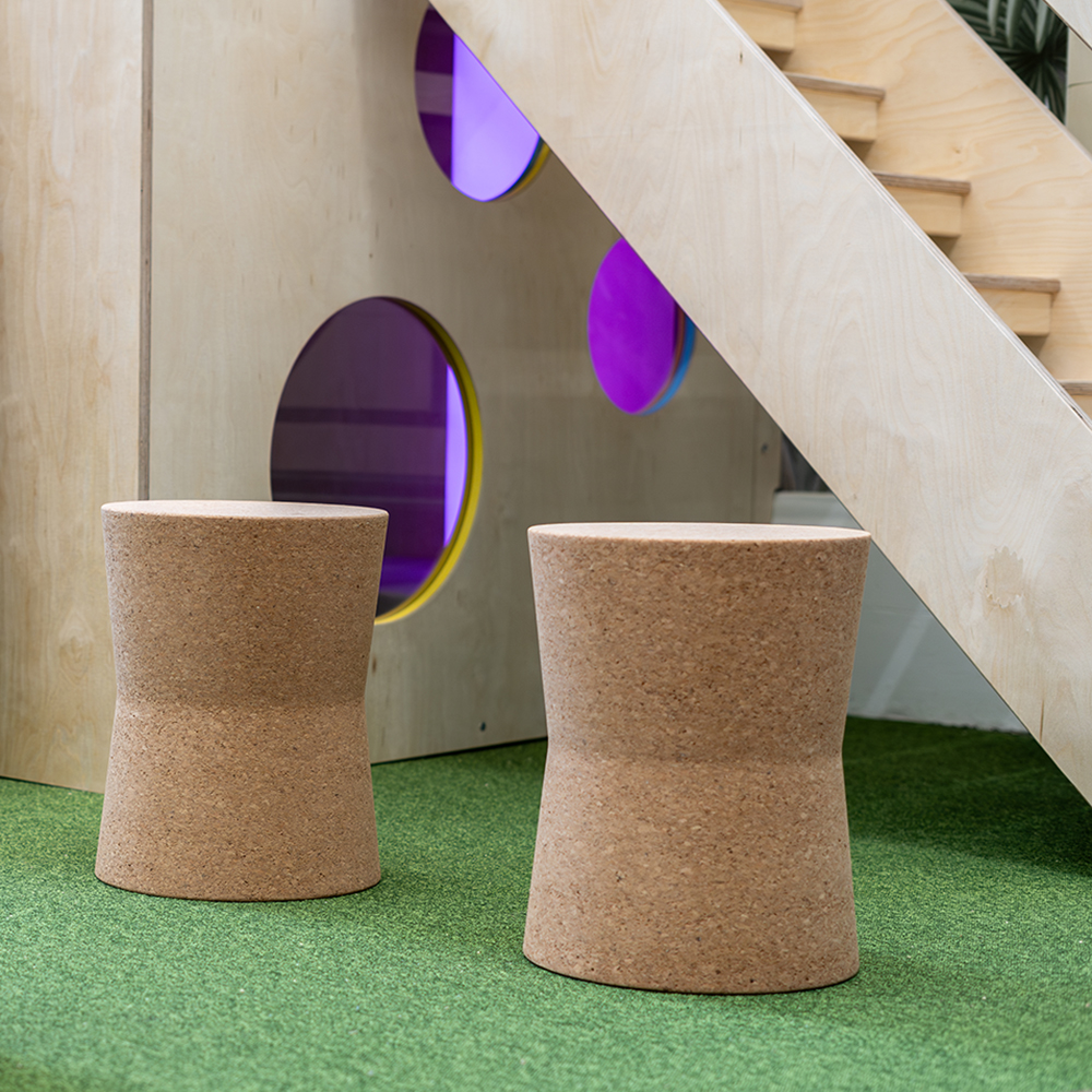 Cork is easy to clean, sound-absorbing, and fire-retardant, making it perfect for public spaces and especially children's environments.