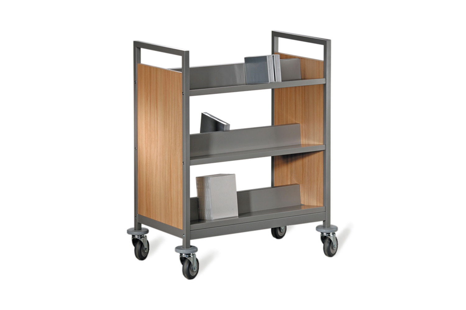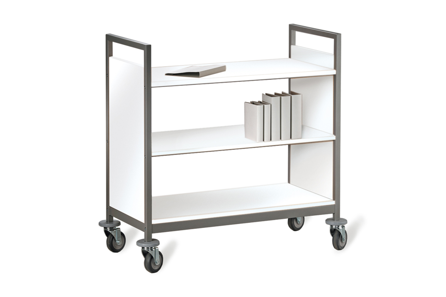 The Classic Line book trolley is available in 7 models and with protective rubber rings above the castors which help prevent damage to building walls and doors.