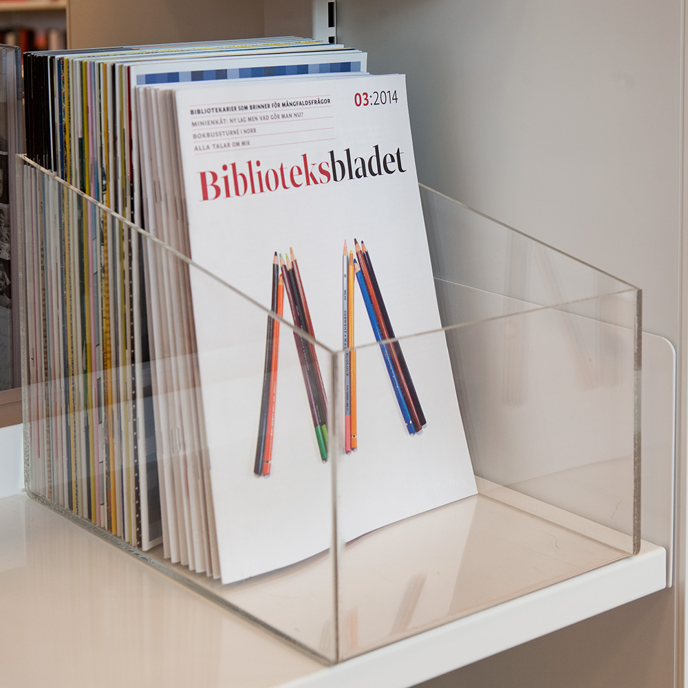 Functional and neat display box with lower front panel which allows for browsing.