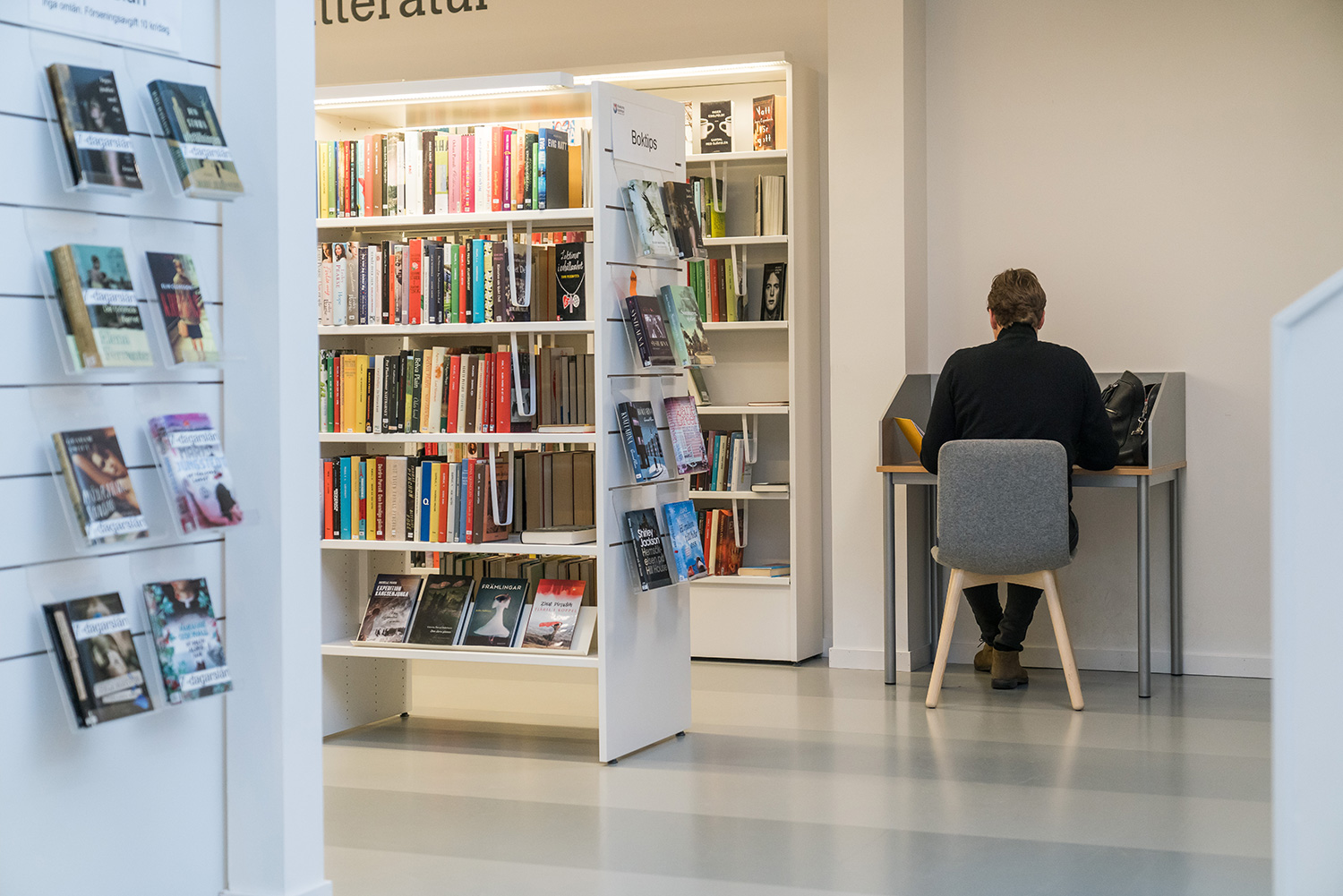 The displays are easily moved around to create flexible display solutions for books, AV-media such as CD/DVDs, magazines, brochures, etc.