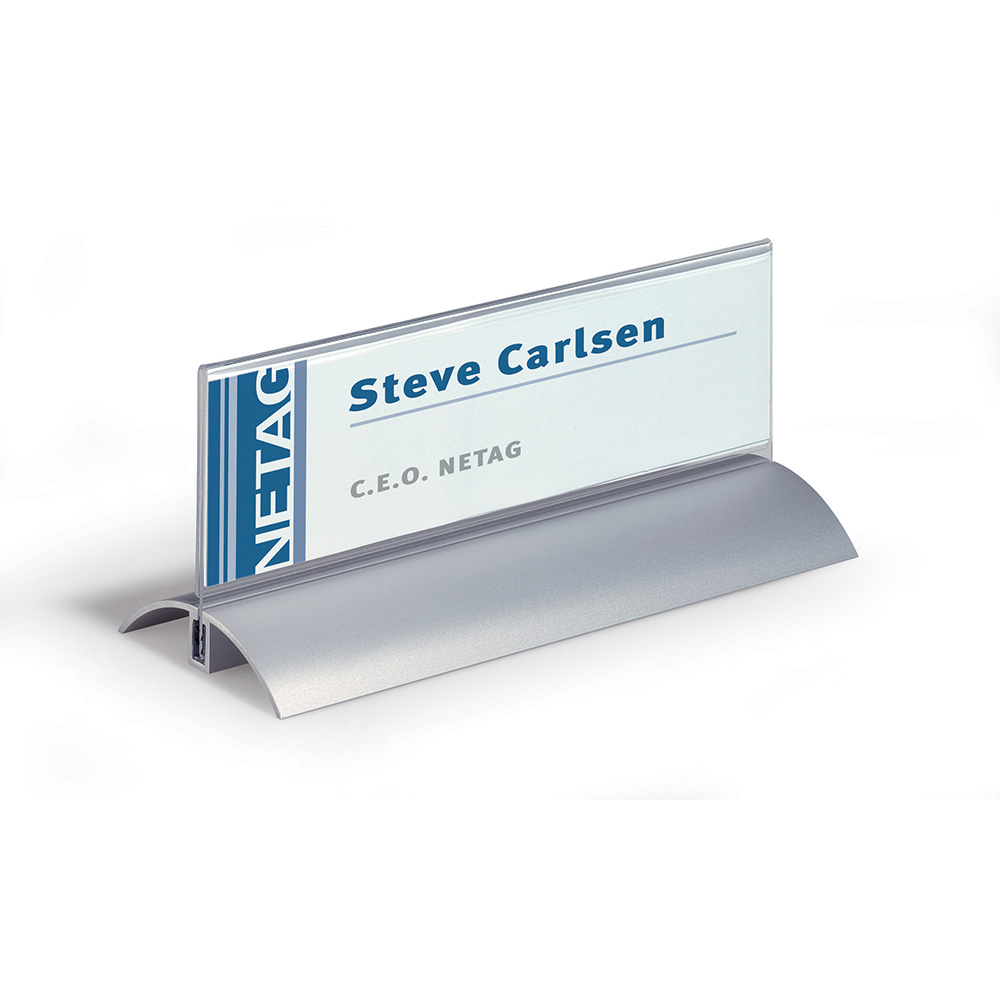 Exclusive double-sided sign for tables, countertops, shelves, window displays, etc.