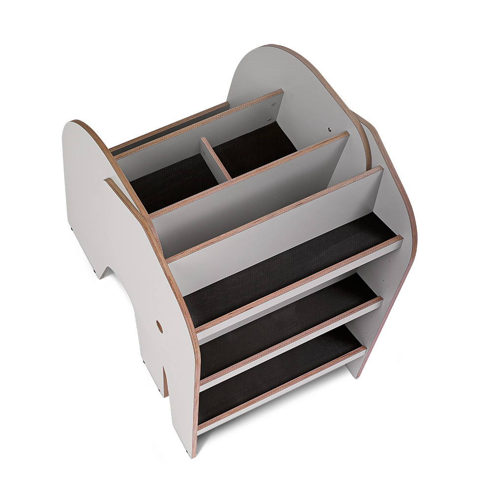 We use laminated birch plywood – here with visible edges. All to create both a durable surface and a lasting construction. Perfect for the most demanding library environments!