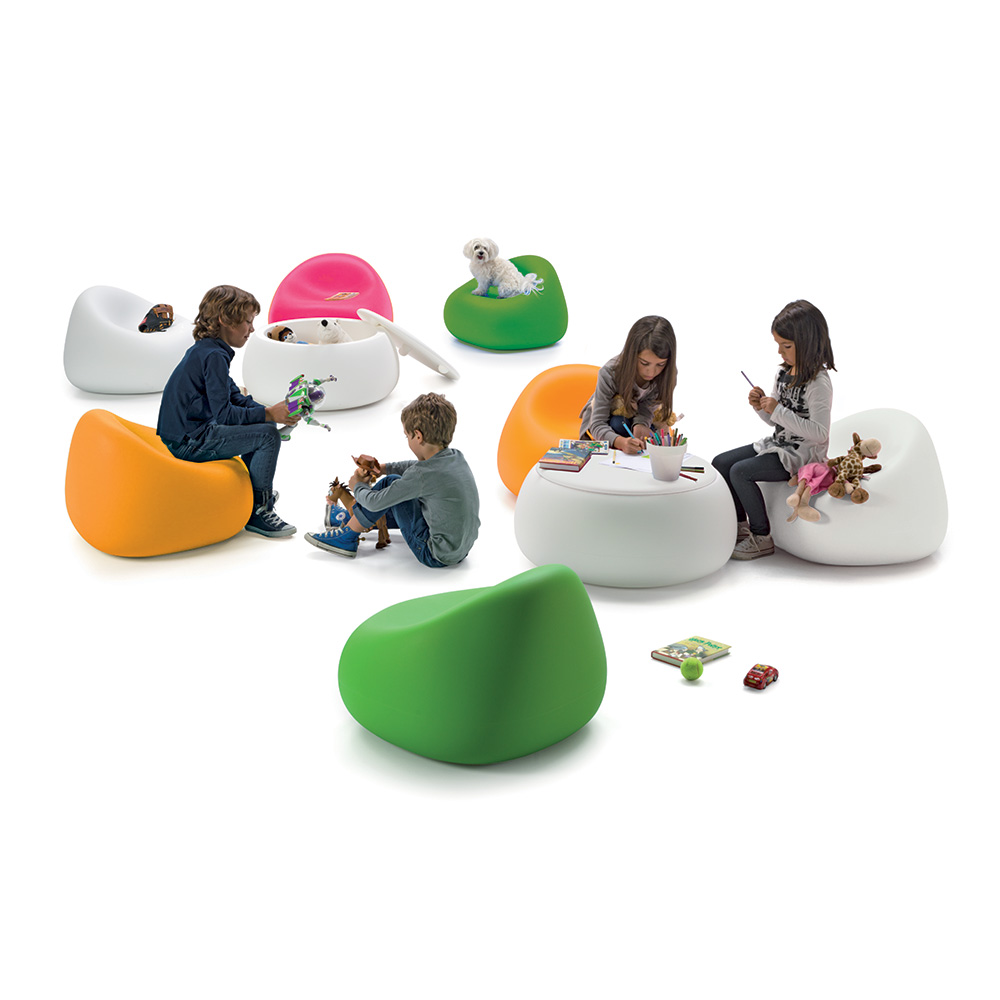 Shaped like a soft, already ”used” bean bag, the Gumball armchair offers the perfect place together with friends or a good book.