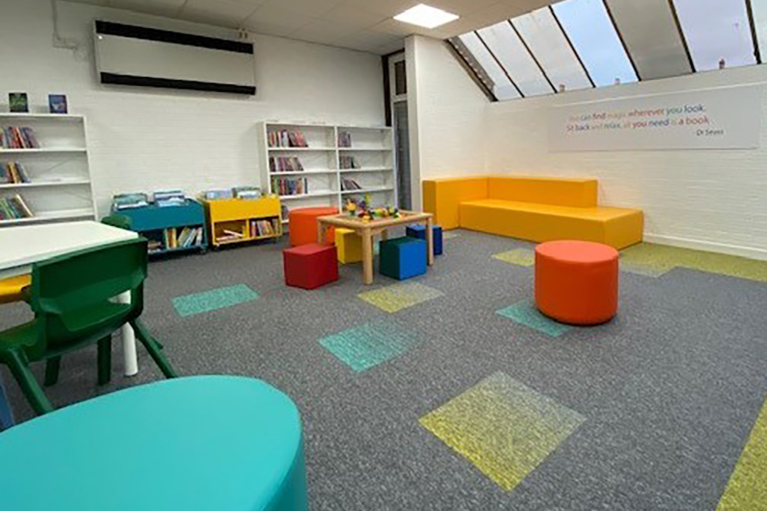 • Colourful and modern display units also placed throughout the library and supplied with castors to allow easy removal or relocation.