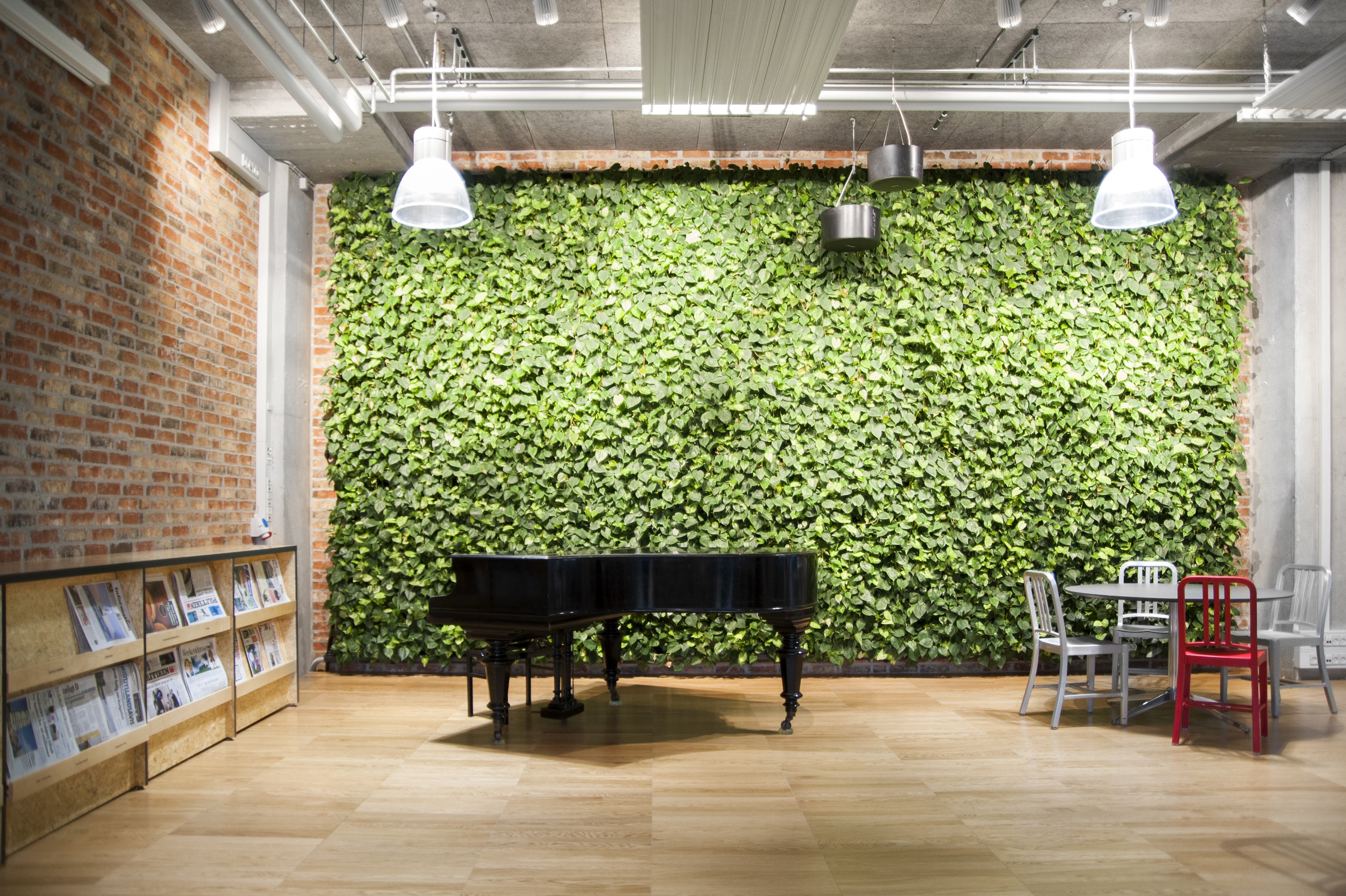 Touch the "living" wall decorated with leaves. Herning Public Library, Denmark.