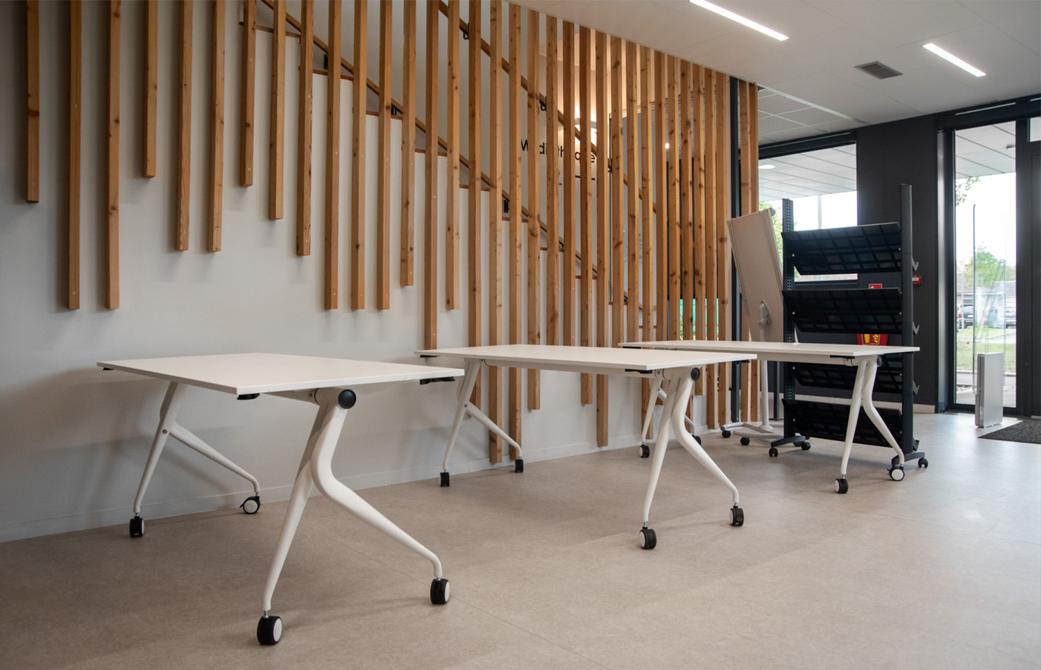 Touch the wooden components. Angerville Public Library, France.