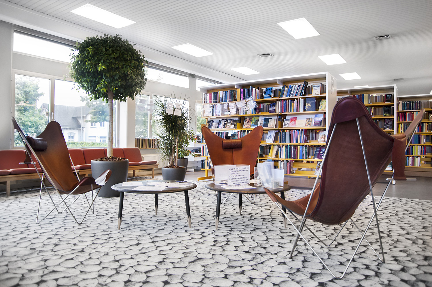 At Taulov library, a simple upgrade of the existing red shelving with new gables gave the classic 60/30 steel system a new lease of life.