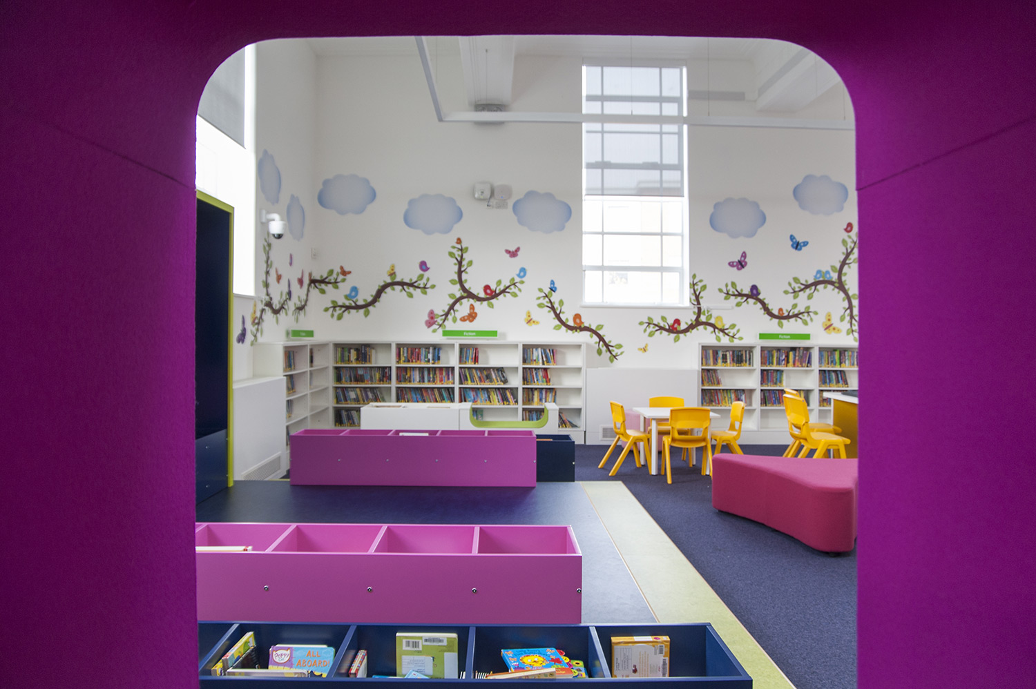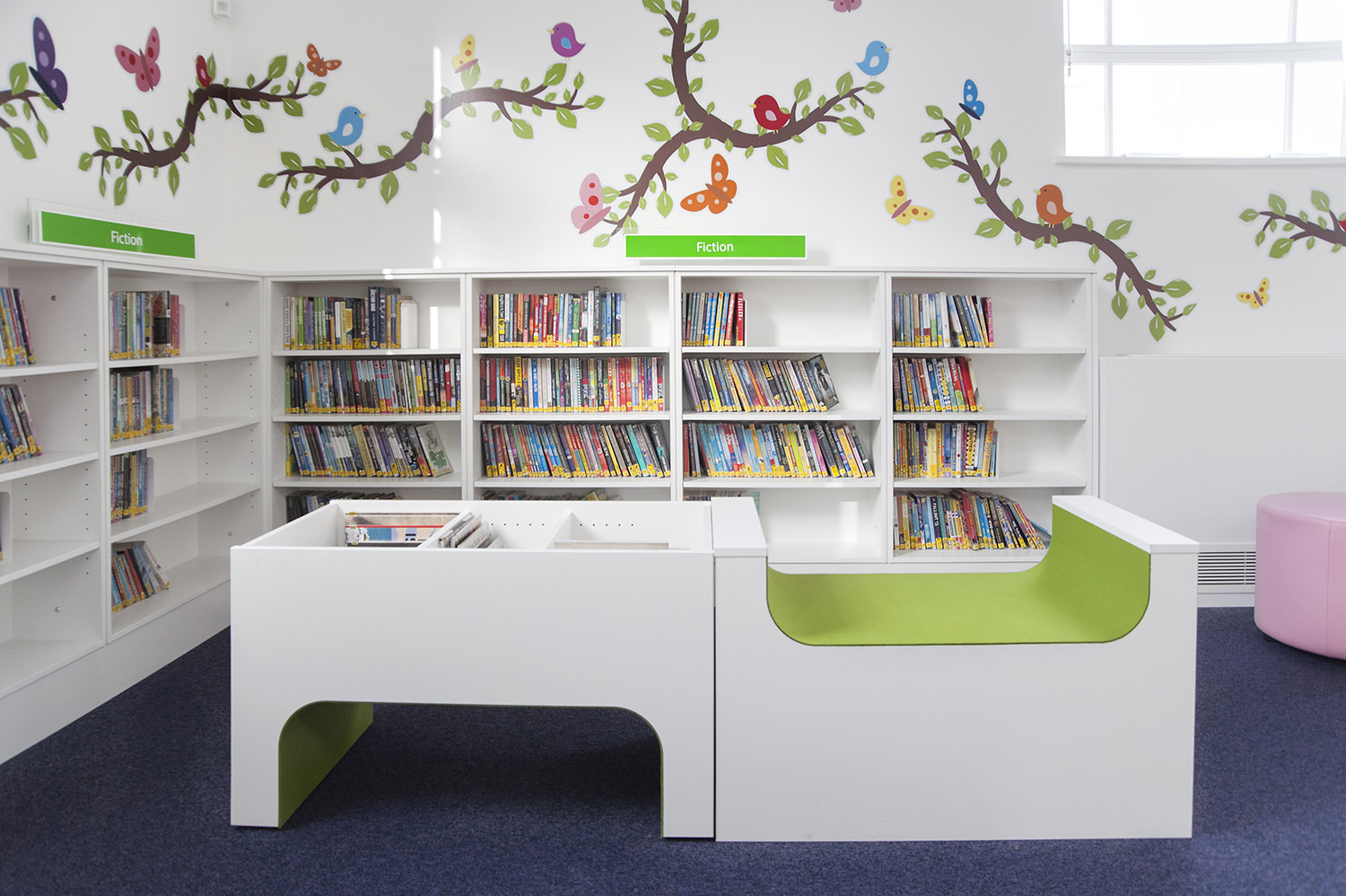 The children’s area makes a visual impact with stunning wall graphics that extend to the furniture. A stage has been fitted and is surrounded with integrated bright coloured kinderboxes, allowing kids to browse through the books with ease. Continuing the digital theme, an interactive big screen has also been installed. The library is now open 7 days a week and is certainly worthy of the flagship status it has been awarded.