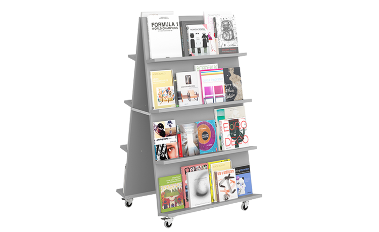 Catch the attention with the attractive and simple double-sided book podium to show the fronts of the books.