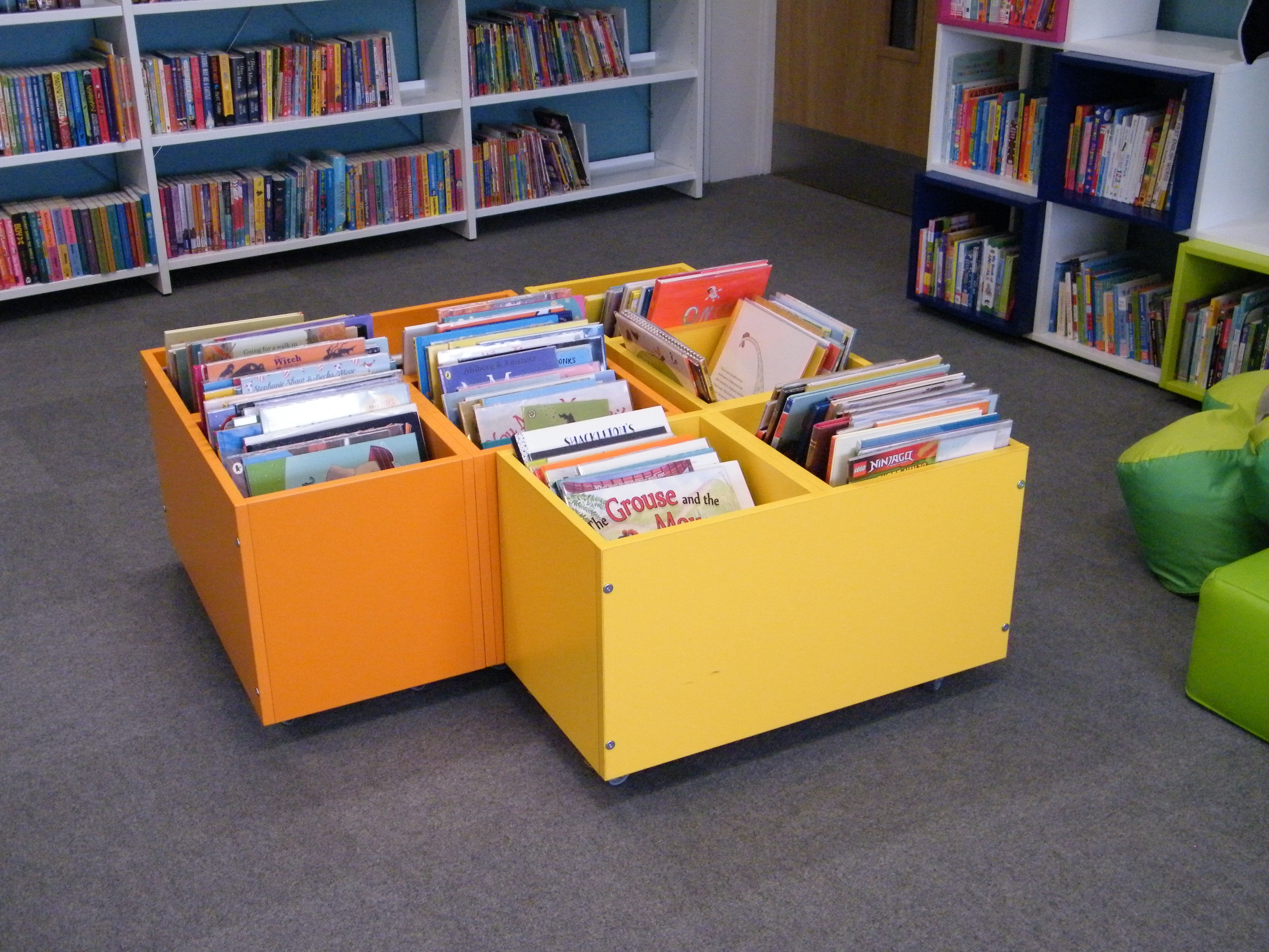 The Children’s area can be seen by passers-by and the use of brightly coloured graphics, soft furnishings and fun furniture encourage children to come in, stay and enjoy their time in the library.