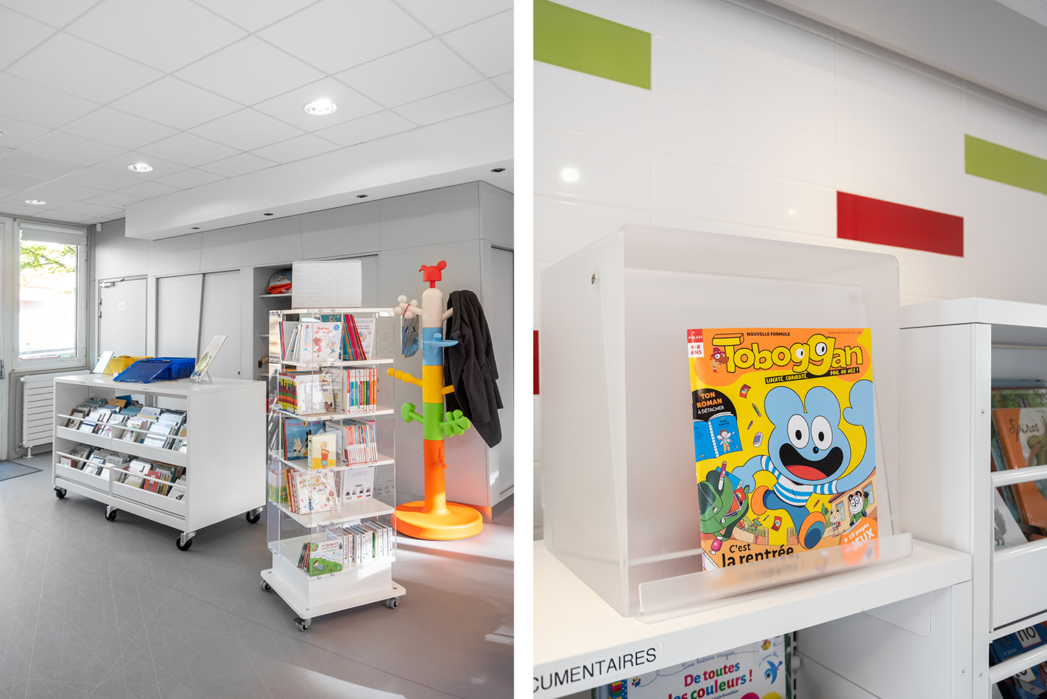 Current magazines and periodicals are stored in a compartment behind the flap (lift and insert) and the fold-down lid also serves as a display holder for the latest issues.