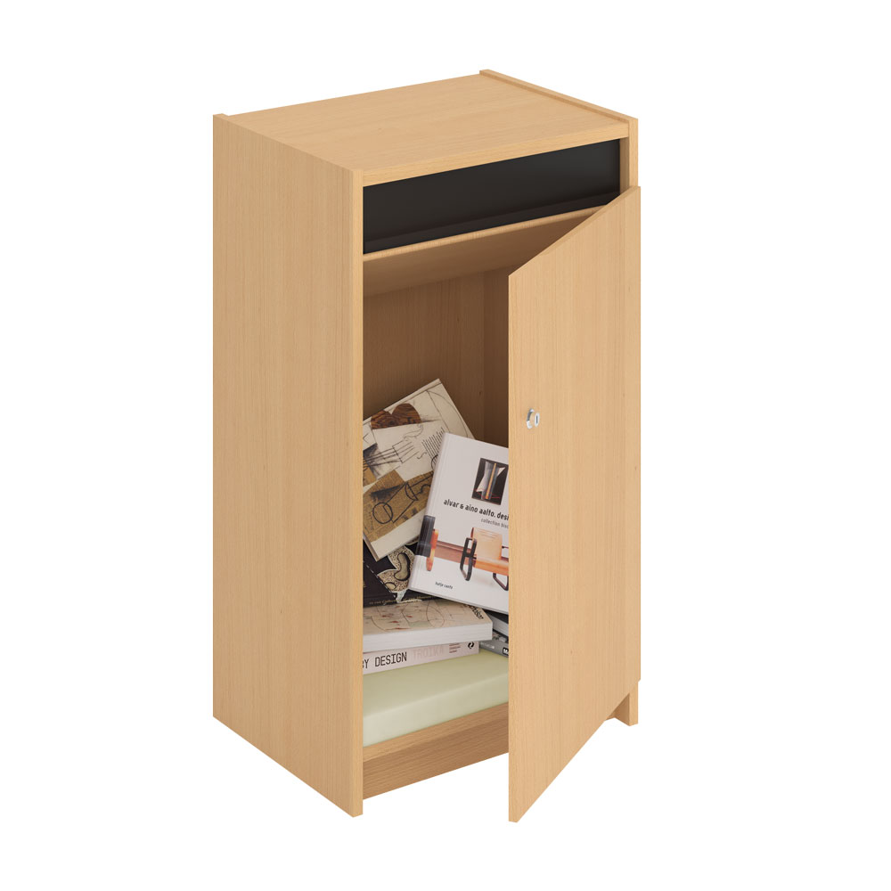 Lockable book return cabinet with foam (40 mm thick) on the bottom for protection of books.
