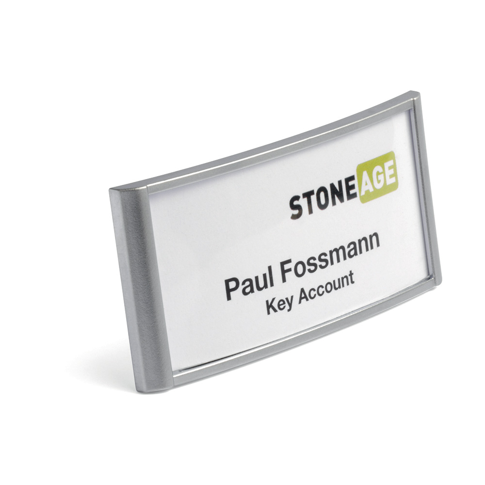 Practical name badge with magnetic close.