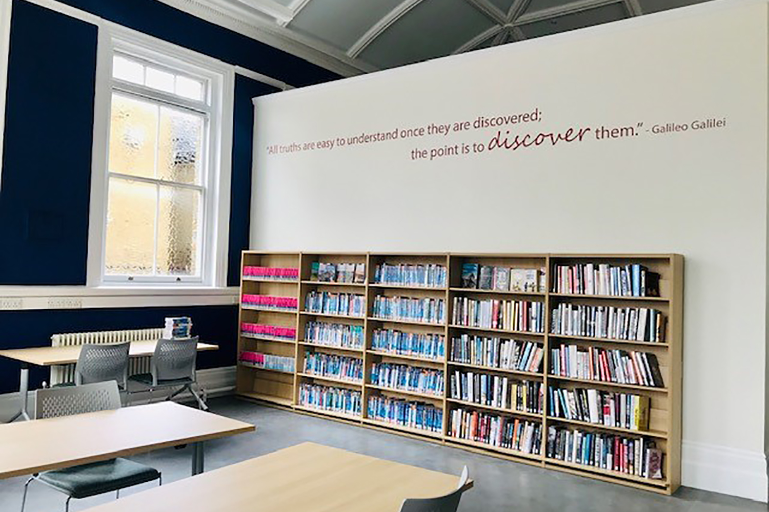 Thedesignconcept installed Twickenham Library, via the ESPO Framework Agreement, in Summer 2020. Situated in a Grade 2 listed building, Thedesignconcept designed an interior which complemented the library’s surroundings. Using our Ratio shelving system with timber shelves, bright colours and bespoke graphics throughout the library, we met the clients requirements for a bright, welcoming and safe space for all.