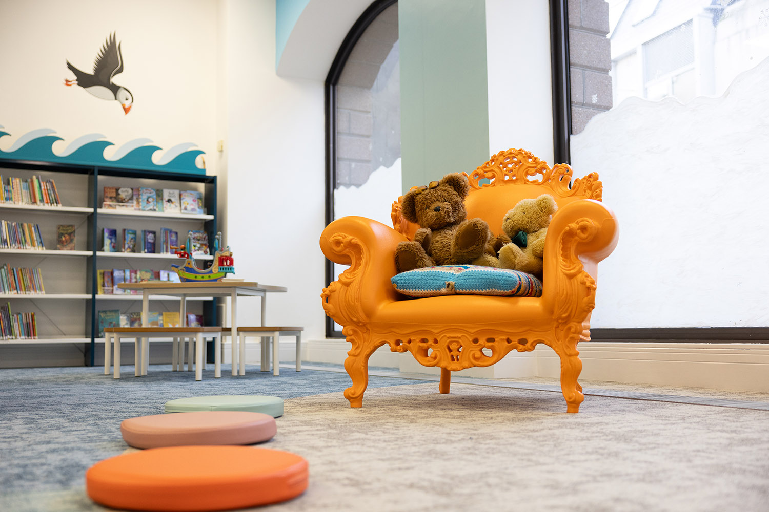 A generous armchair for adults to enjoy reading alone, or for storytelling. Children will gather round at storytelling time for sure.