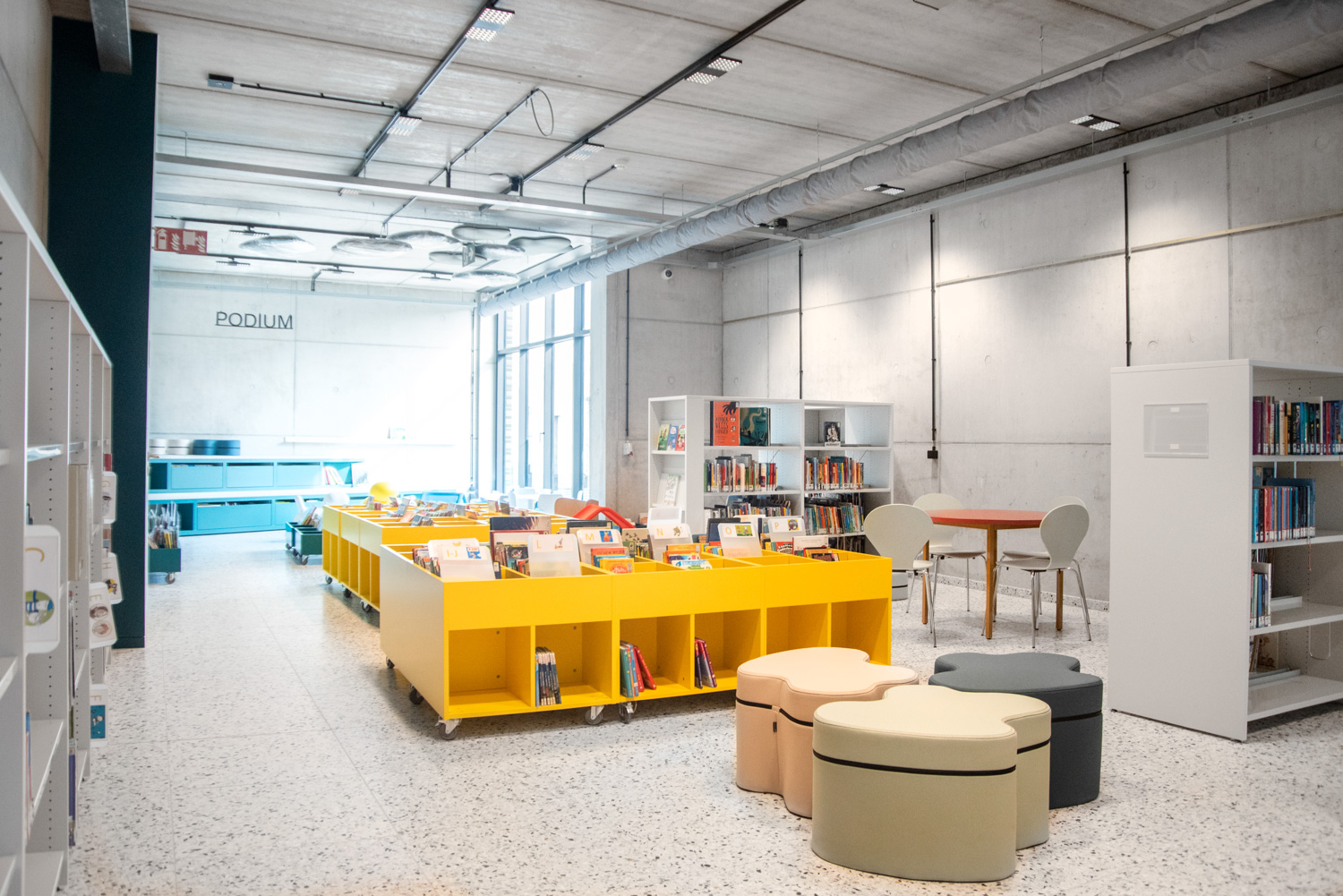 Sara is a functional yet modern browser that presents and stores all types of books and medias in an uncomplicated and visual manner. Depending on the height, the browser can fit both children and adults and be used in all areas of the library.