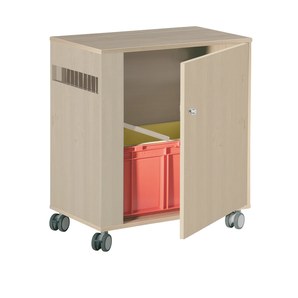 Easily positioned mobile and lockable cabinet